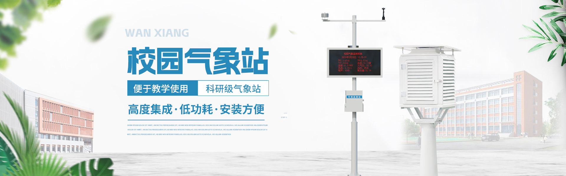山東萬象環(huán)境科技有限公司官網(wǎng)主要產(chǎn)品有防爆氣象站,校園氣象站,農(nóng)業(yè)氣象站,負氧離子監(jiān)測站,超聲波氣象站,歡迎咨詢13276362033!